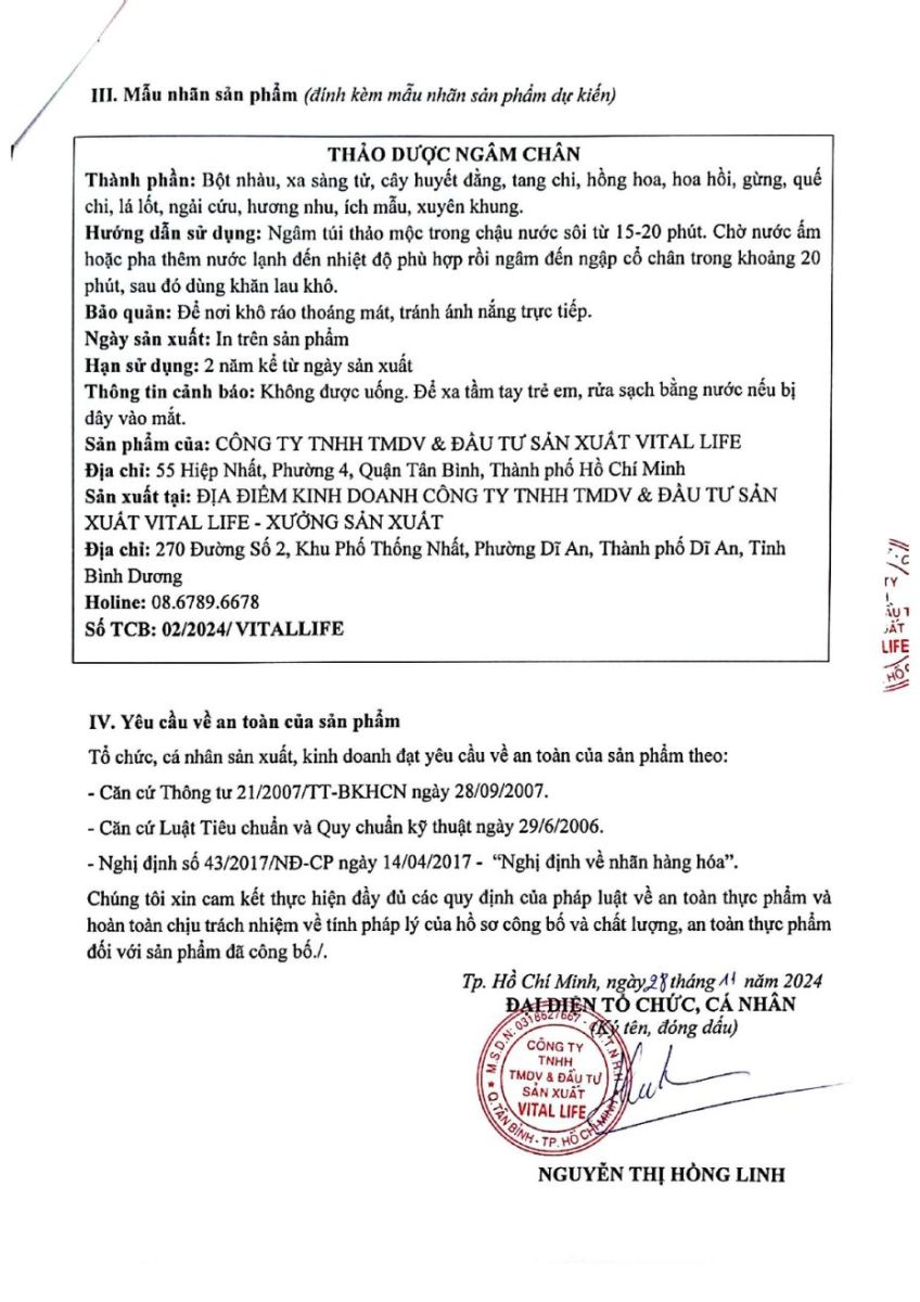 Thành phần: Bột Nhàu, Xa Sàng Tử, Cây Huyết Đằng, Tang Chi, Hồng Hoa, Hoa Hồi, Gừng, Quế Chi, Lá Lốp, Ngải Cứu, Hương Nhu, Ích Mẫu, Xuyên Khung